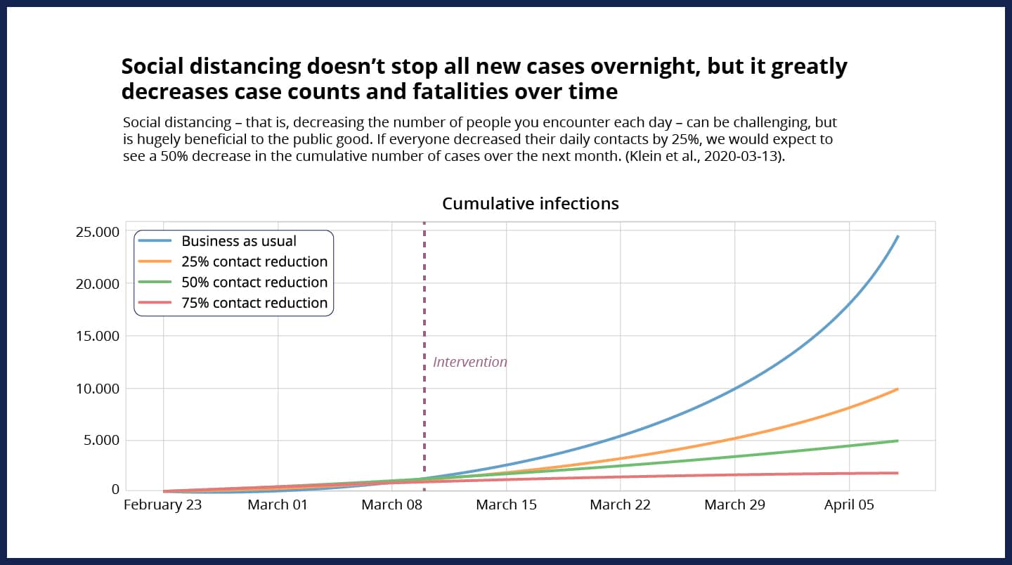 Quote: ”many places that have recently implemented social distancing measures can expect to see cases continue to accumulate in the short-term, but new cases will likely plateau and decline in the medium- to long-term.”